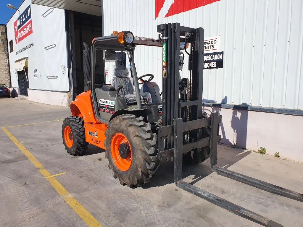 Carretilla Ausa C250H todo terreno de 2500kg de capacidad de carga y de mástil triplex de hasta 3.70 metros de altura. Del año 2020, seminueva, con todas sus revisiones al día. Consúltanos sin compromiso su garantía, financiación, alquiler con opción a compra, etc.